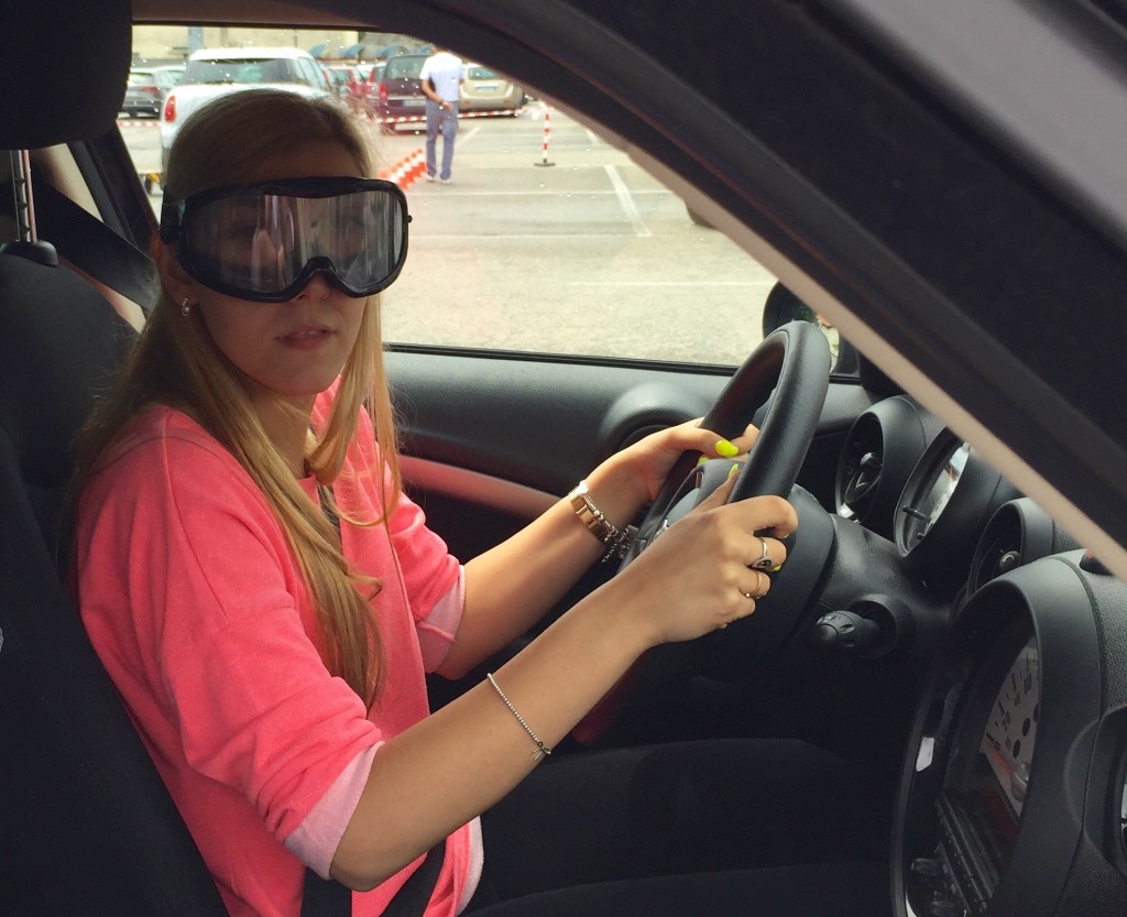 Guida con occhiali che simulano stato di ebrezza da alcol